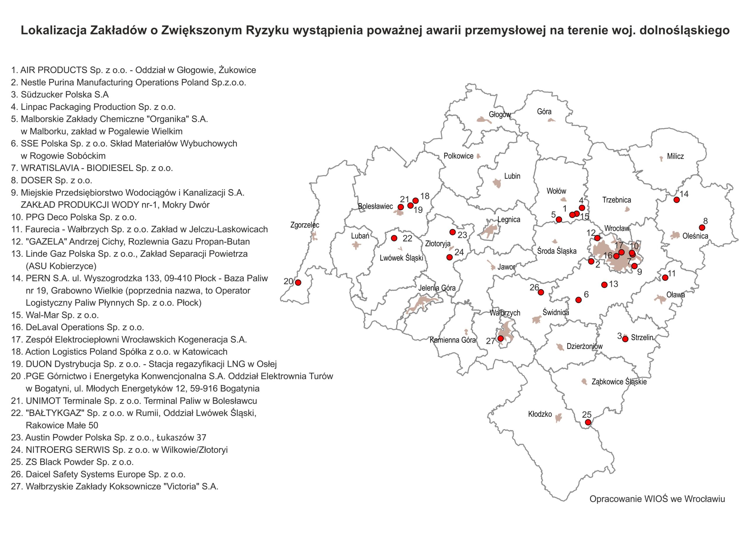 Wykaz potencjalnych sprawców poważnych awarii – zakładów o zwiększonym ryzyku (ZZR) wystąpienia poważnej awarii przemysłowej – wg stanu na dzień 22.08.2025 r.